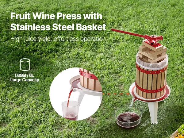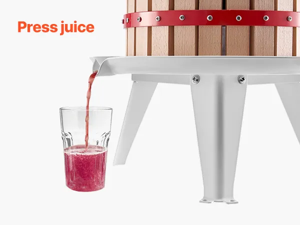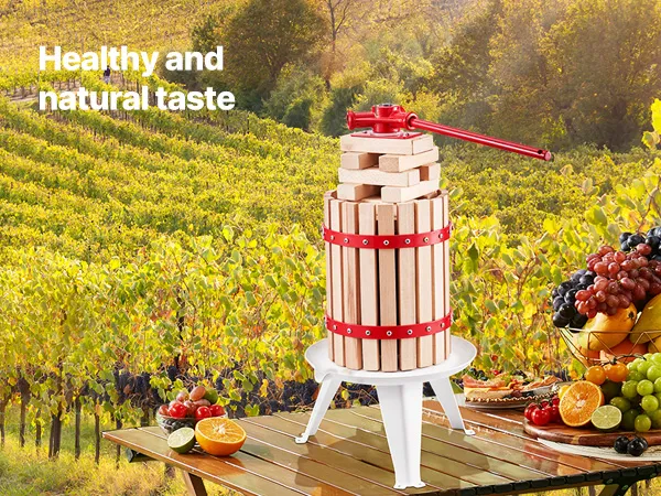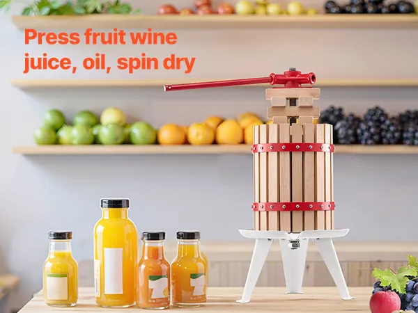 Exprimido eficiente: esta prensa manual para vino de frutas cuenta con un bloque de prensado de madera de haya gruesa y ocho bloques de soporte. En comparación con el prensado tradicional con tela, la presión mejorada permite una extracción más completa y una producción de jugo rápida y eficiente. Puede exprimir una taza de jugo fresco y saludable en solo unos minutos, disfrutando de una bebida de fruta pura y natural.