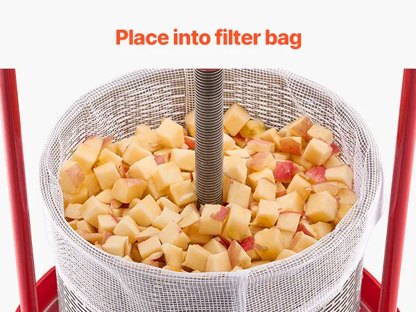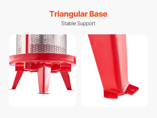 Construcción robusta: Construida con una sólida viga transversal de hierro fundido, la prensa de vino de frutas puede abrirse, lo que hace que sea conveniente cargar la canasta o colocar frutas directamente en el interior. La base triangular garantiza la estabilidad y la colocación segura en el suelo. Viene con dos bolsas de filtro de calidad alimentaria, lo que garantiza un uso seguro e higiénico.