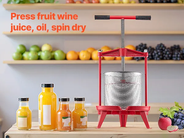 Uso versátil: esta prensa de vino se puede utilizar para prensar diversas frutas para obtener jugos frescos y saludables, así como para prensar vino de frutas, queso, pulpa de frutas, aceite de oliva y más. Es adecuada para reuniones familiares, restaurantes, bodegas, granjas y tiendas de jugos frescos.