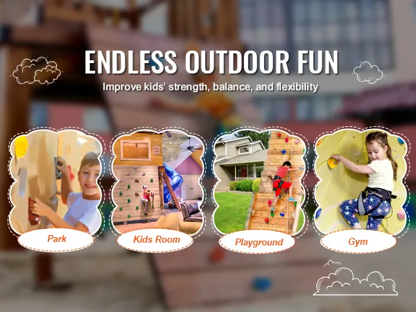 Estos soportes de escalada para niños se pueden fijar a cualquier juego de exterior o a una tabla resistente, lo que los hace perfectos para habitaciones infantiles y parques infantiles al aire libre. Fomentan el juego tanto en el interior como en el exterior, manteniendo a los niños alejados de las pantallas y fomentando el amor por las actividades al aire libre.