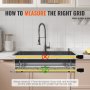 Mida dentro de 1" desde la PARTE INFERIOR de su fregadero para obtener el tamaño de rejilla correcto. Mientras tanto, la longitud y el ancho del protector del fregadero deben ser 0,3" más pequeños que el tamaño de su fregadero.