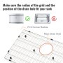 Cómo medir el tamaño correcto: Debe medir 1" desde la PARTE INFERIOR del fregadero para obtener el tamaño correcto de la rejilla. NO HAGA LA PARTE SUPERIOR del interior del fregadero. Mientras tanto, la longitud y el ancho del protector del fregadero deben ser de 0,3". más pequeño que el tamaño de su fregadero.Además, verifique si el radio de la rejilla y la posición del orificio de drenaje coinciden con su fregadero.