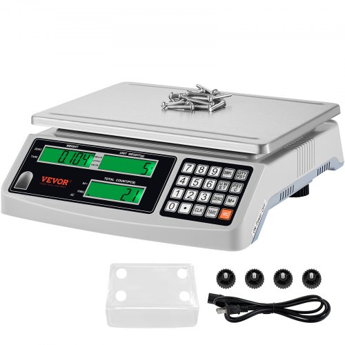 Báscula contadora industrial VEVOR, 30 kg x 1 g, báscula digital para piezas y monedas, unidades g/kg/lb, báscula electrónica de gramos, báscula contadora de inventario, báscula de cocina para joyas con puerto RS232 y pantalla LCD
