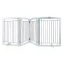 Puerta para perros independiente VEVOR, 32" de alto x 96,5" de ancho, puerta para mascotas independiente, puerta para perros plegable de 4 paneles para pasillos anchos y estrechos, barrera para perros expandible con soporte silencioso para pies para interiores, color blanco