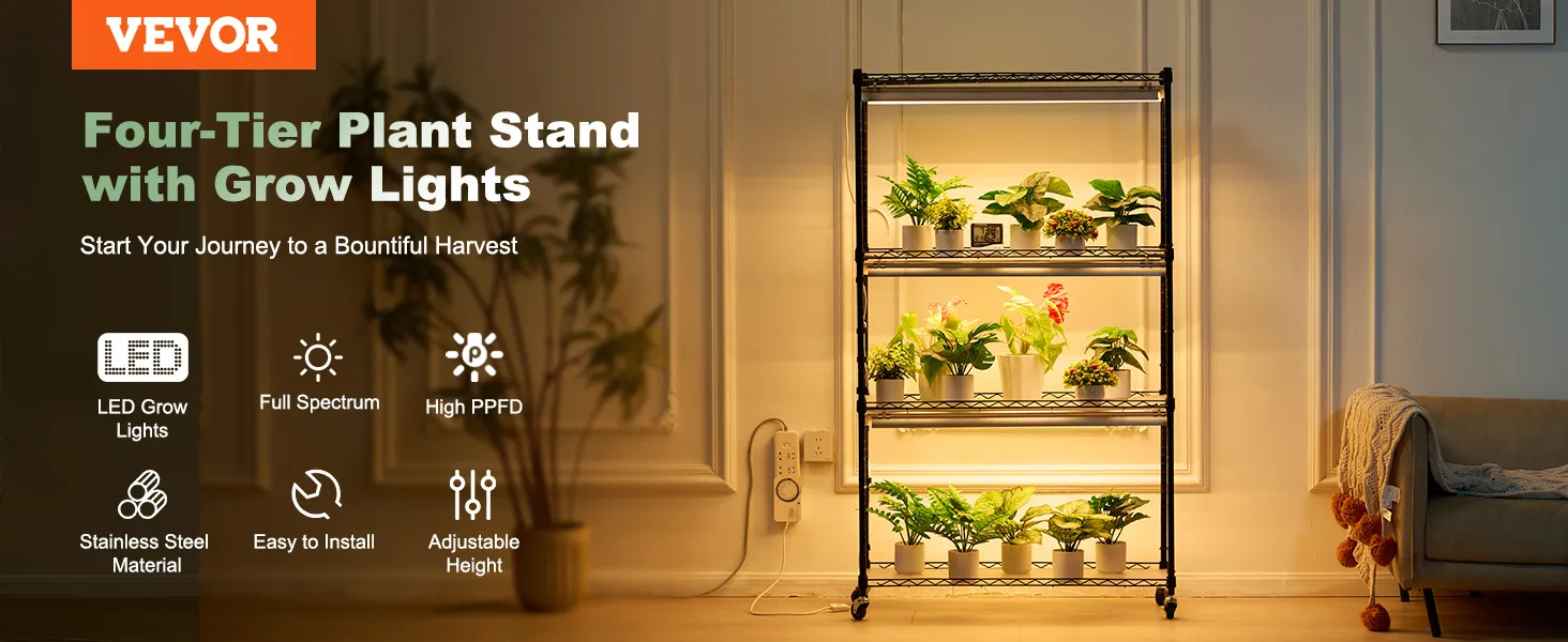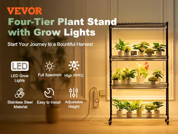 VEVOR - Soporte para plantas de 4 niveles con luz de cultivo para bricolaje
