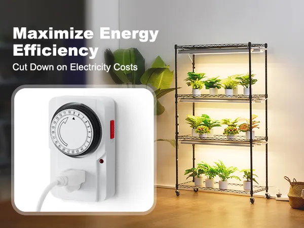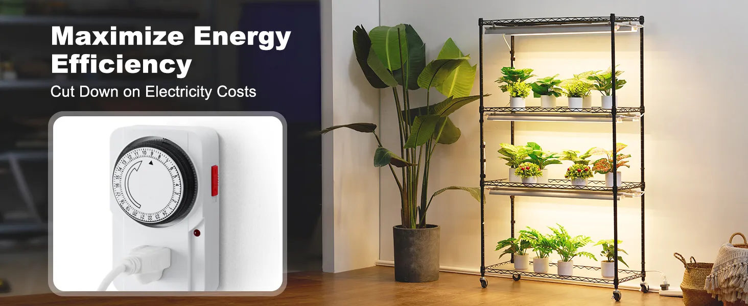 El estante de metal para plantas cuenta con un temporizador mecánico que puede configurar con precisión el tiempo de encendido, lo que reduce el desperdicio innecesario de energía.