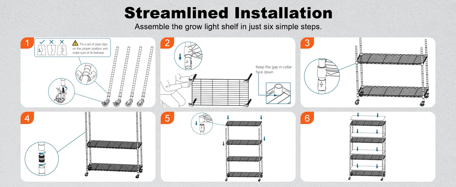 Fácil montaje: el estante para cultivo de plantas con tapa cuenta con componentes de conexión optimizados con un diseño cilíndrico único, lo que simplifica el proceso de montaje. Las instrucciones claras lo guían a través de cada paso, lo que facilita la instalación y el ajuste del estante por su cuenta.