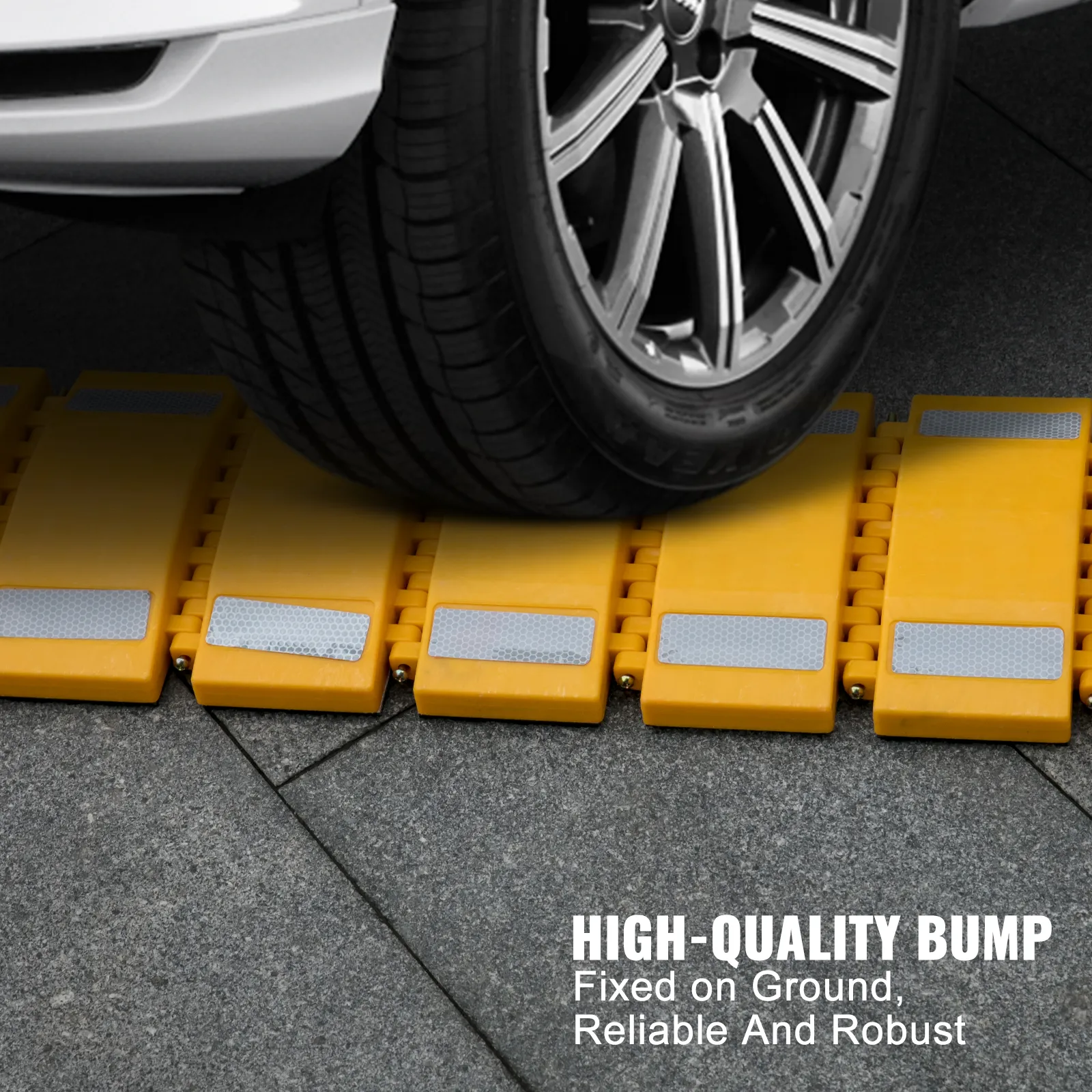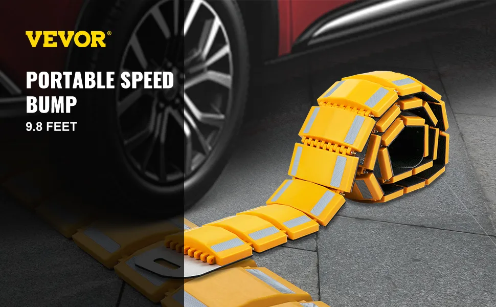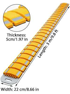 Los topes de velocidad amarillos de 9.8 pies son llamativos y las franjas reflectantes pueden ser muy llamativas durante la noche. Por lo tanto, los conductores pueden ver los badenes del estacionamiento incluso durante la noche.