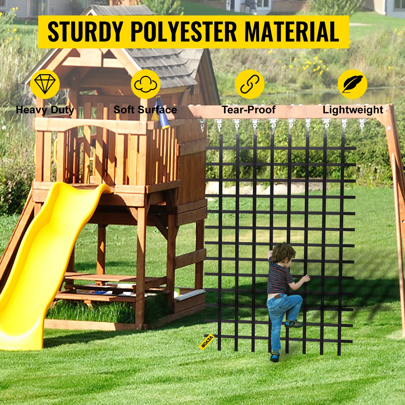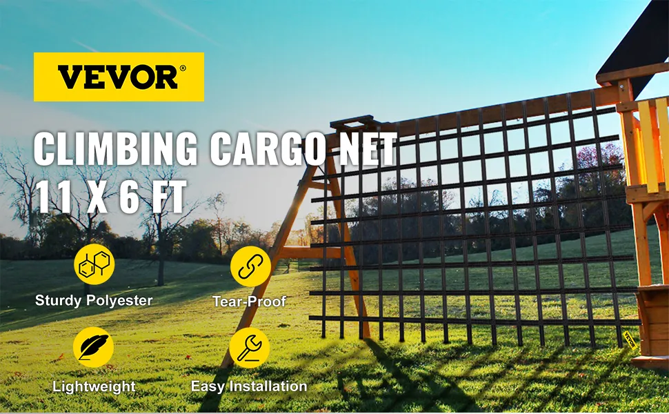 La red de carga de escalada negra adopta material de poliéster de alta calidad, resistente y seguro, con una capacidad de peso de 1000 libras. Puede instalarlo en varios equipos de juegos para jugar o hacer ejercicios especiales, como columpios, paredes para escalar, casas en los árboles, gimnasios en la jungla, etc. Brindará mucha alegría y diversión a usted y a sus hijos.