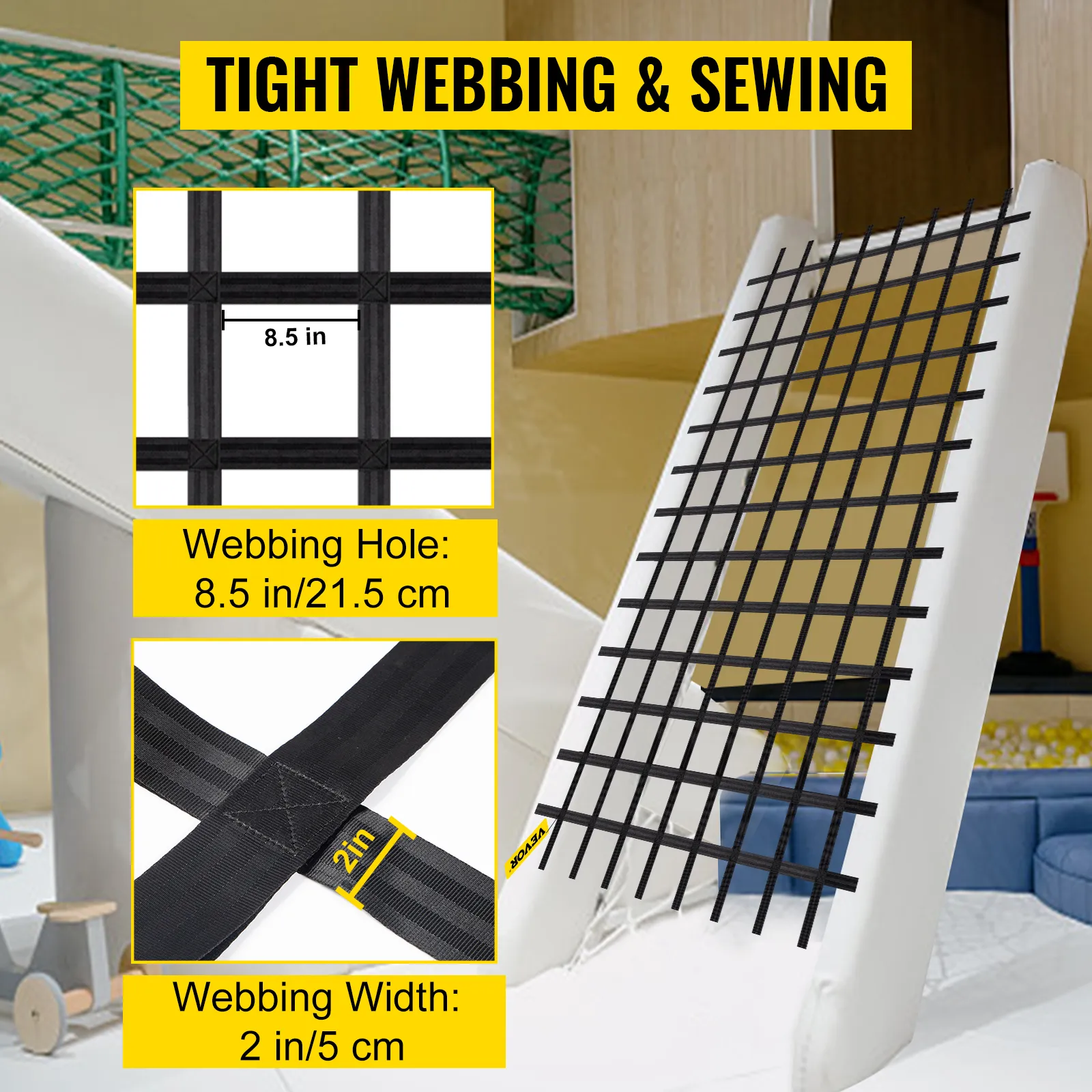 La red de escalada está estrechamente tejida y cosida para una calidad y seguridad superiores. Su ancho de tira: 2 in/5 cm, rejilla de cincha: 8,5 in/21,5 cm.