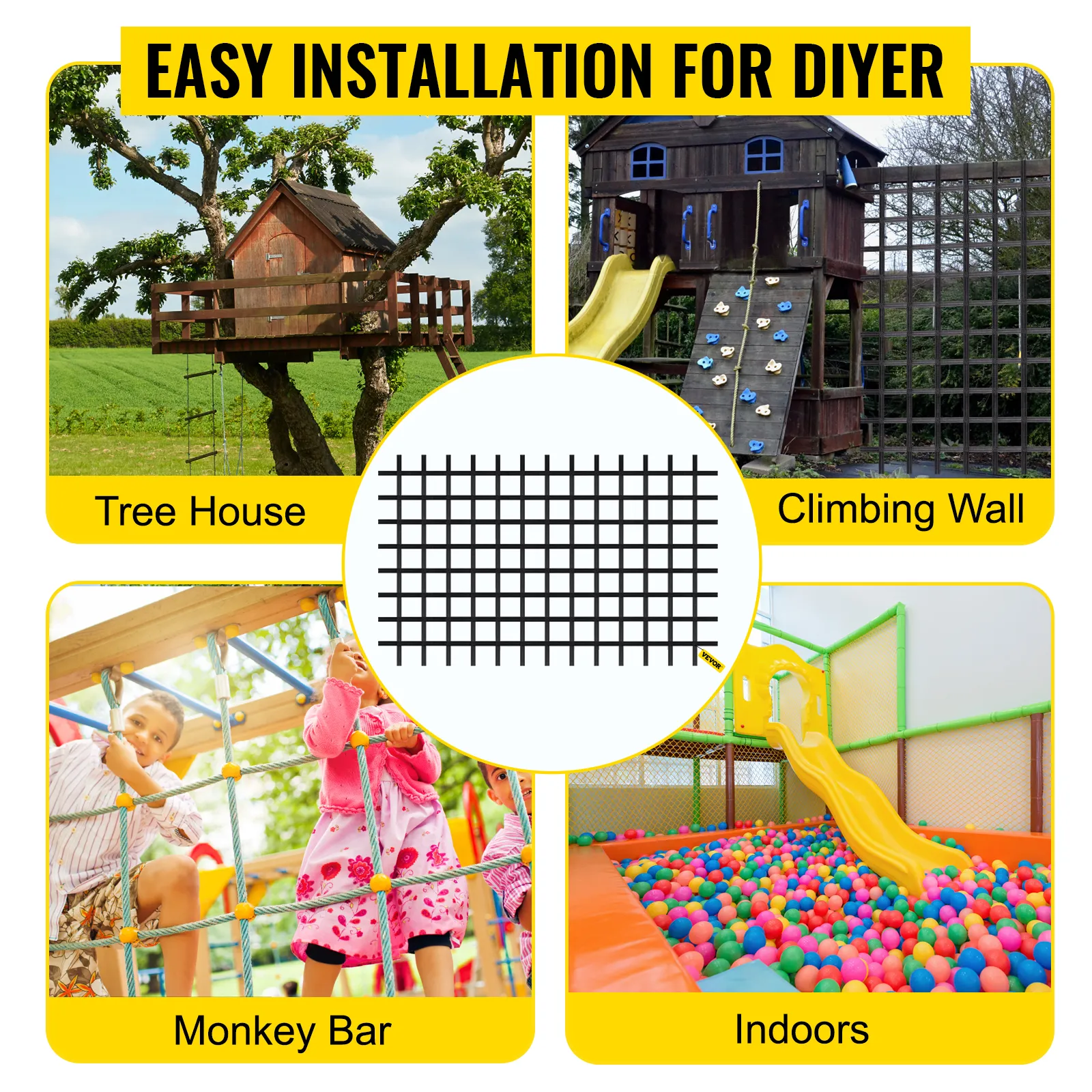 La red de escalada se puede instalar en vertical, horizontal o en varios ángulos, una adición brillante a casas en los árboles, paredes de escalada, barras de mono, etc. Es una opción ideal para los aficionados creativos al bricolaje.