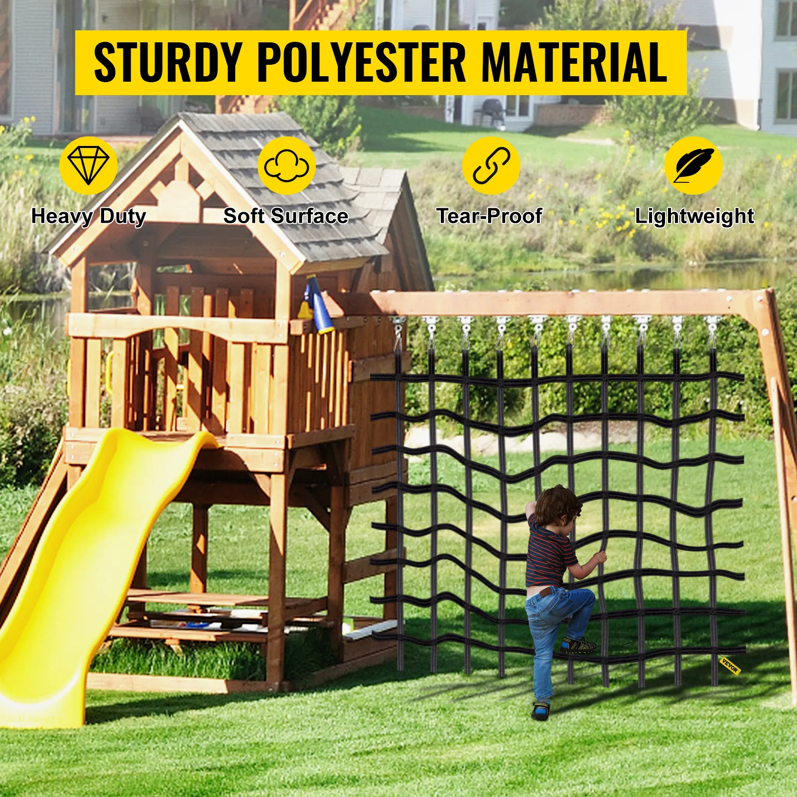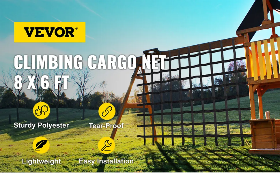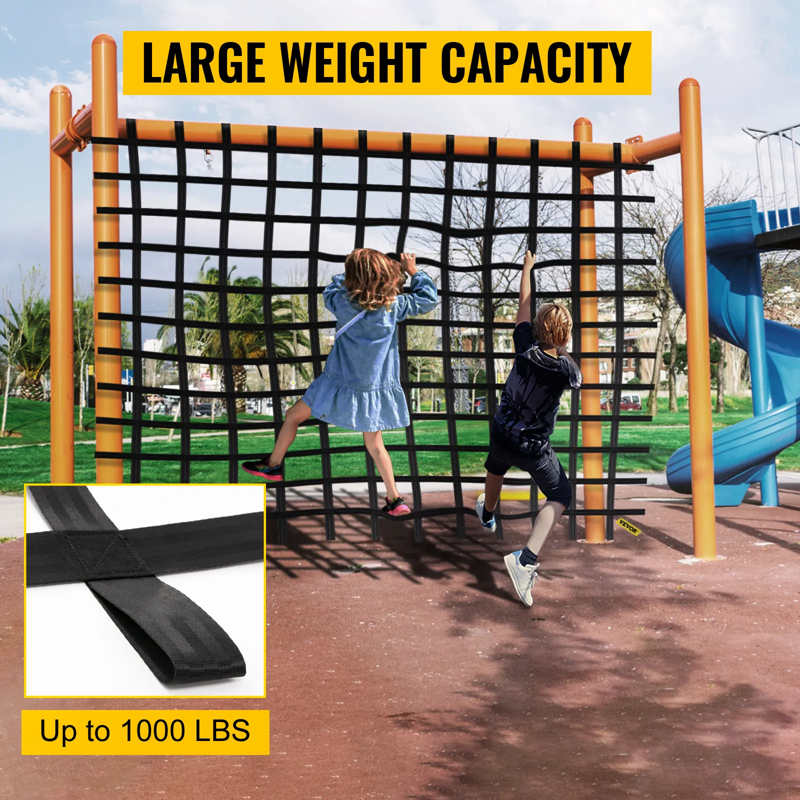 La red de carga negra para escalada adopta material de poliéster de alta calidad, resistente y segura, con una capacidad de peso de 1000 libras. Puede instalarla en varios equipos de juegos para jugar o hacer ejercicio, como columpios, muros de escalada, casas en los árboles, gimnasios de la jungla, etc. Le brindará mucha alegría y diversión a usted y a sus hijos.