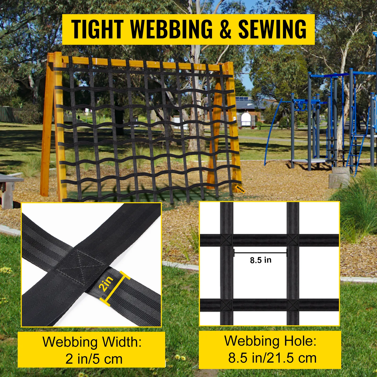 La red de escalada está tejida y cosida firmemente para una calidad y seguridad superiores. Ancho de la tira: 2 in/5 cm, rejilla de cincha: 8,5 in/21,5 cm.