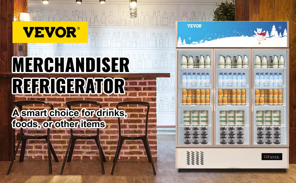 Keep Must-Have Foods and Drinks Handy for Customers with VEVOR'S Refrigerator. It's the smart choice for your commercial business with plenty of space to store beverages, a sleek black exterior, quick-adjust temperature settings, and a quiet compressor. It also offers an interior LED light and a transparent glass door for those working late; it will surely be a hit in your office kitchen.