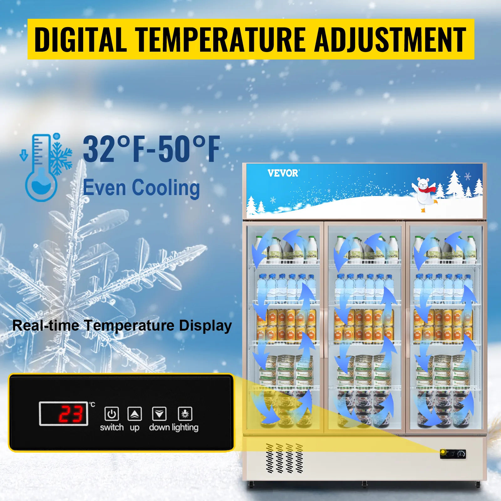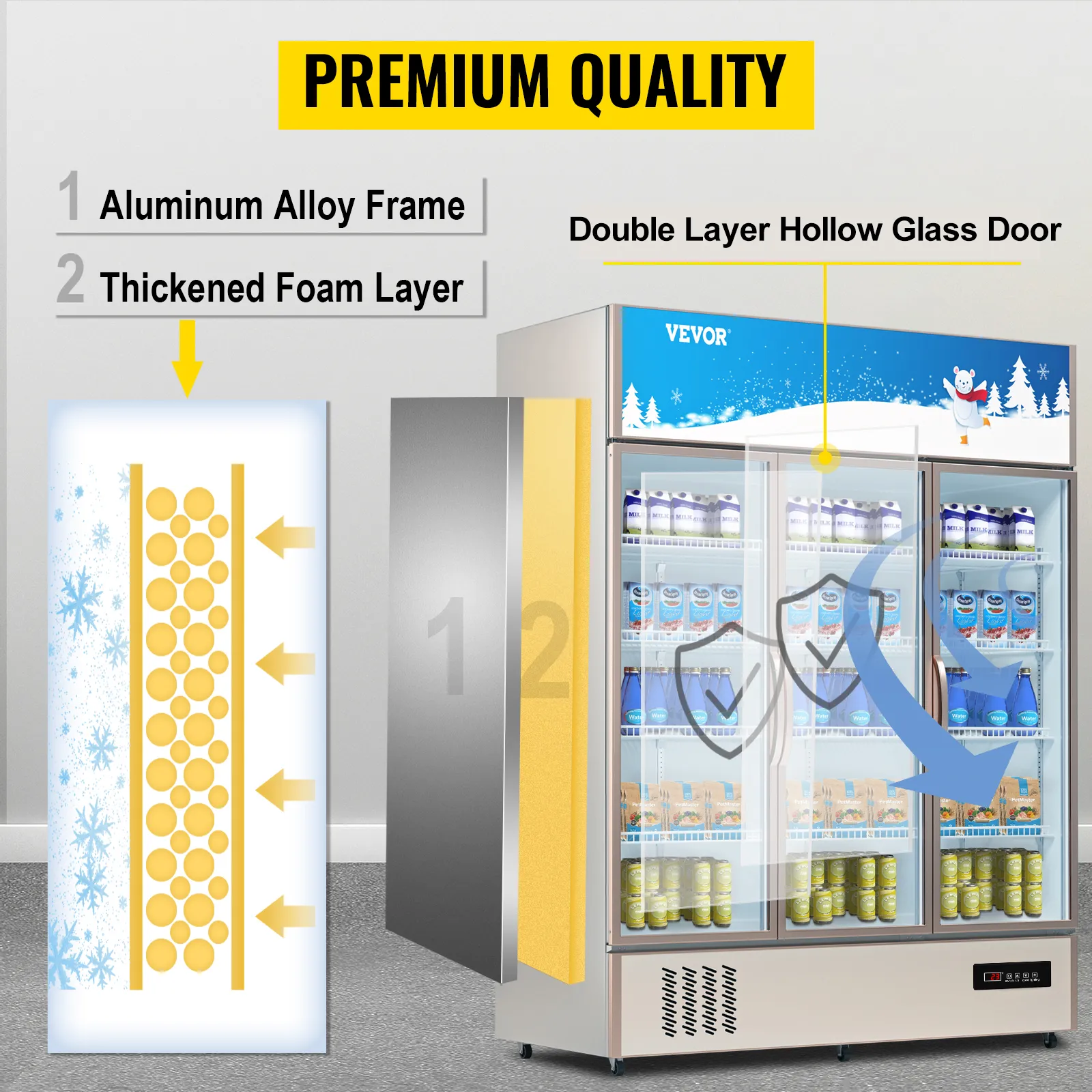 The commercial fridge has a premium-grade glass front and thickened foaming layer to help eliminate condensation and maintain internal cabinet temperatures, which help maintain glass clarity.