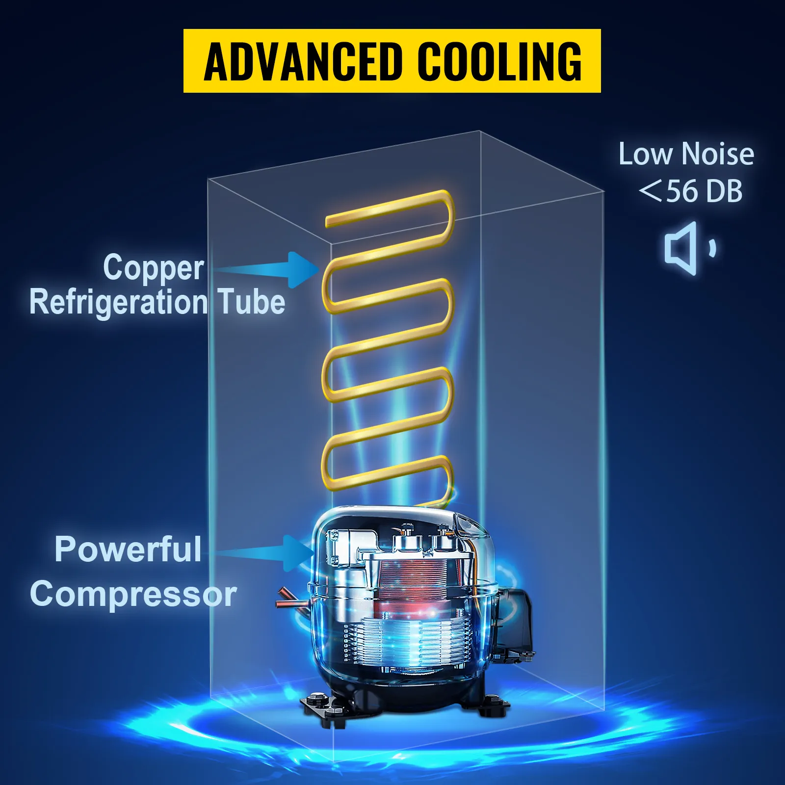 With an advanced cooling copper pipe, this beer cooler's 290W powerful compressor allows you to get products to the desired temperature, increasing efficiency quickly. Low noise: <56 db.