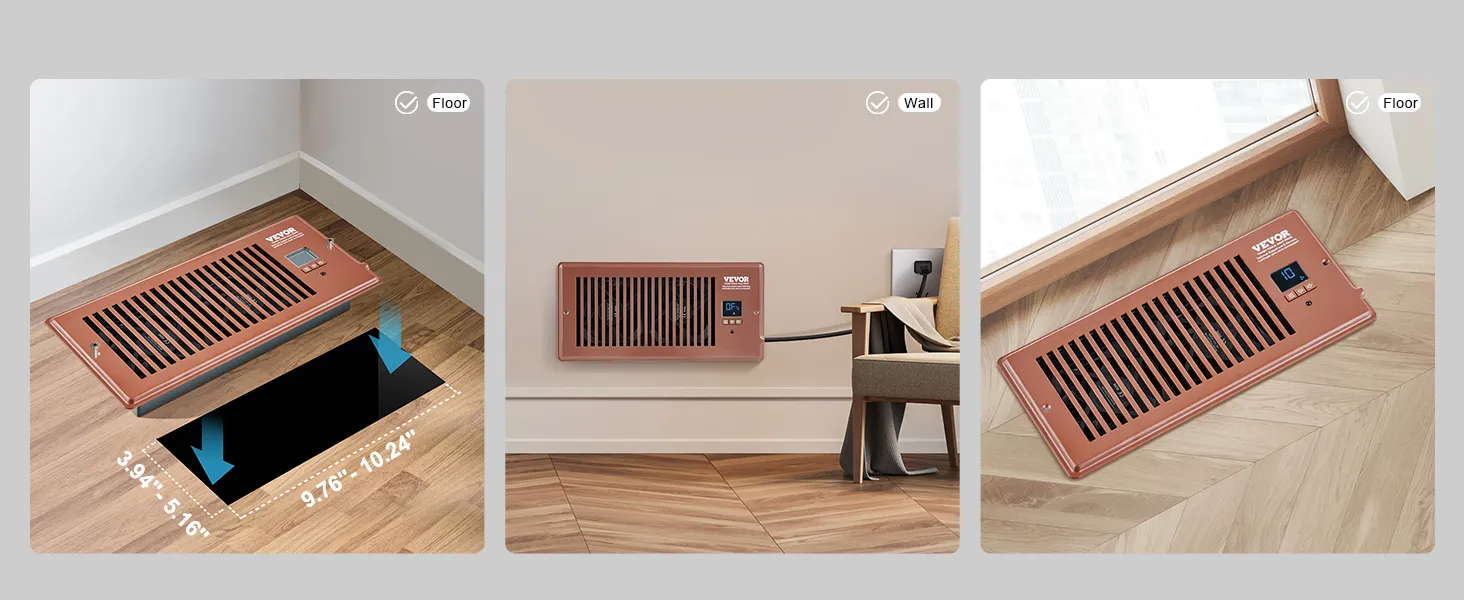 El ventilador de conducto está diseñado específicamente para adaptarse al tamaño de registro estándar de 4'' x 10'' de las paredes o pisos de su hogar. Con su diseño elegante y compacto, combina fácilmente con la decoración de cualquier habitación.
