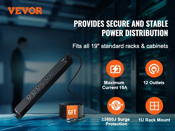 Control de energía confiable: ¡Esta PDU ofrece protección contra sobrecargas, sobretensiones y rayos! El protector de sobretensiones incorporado con una clasificación de 3600 J absorbe y dispersa los picos de voltaje repentinos, mientras que el disyuntor externo reiniciable corta rápidamente la energía en caso de sobrecargas o cortocircuitos, lo que garantiza un funcionamiento sin problemas para su valioso equipo.