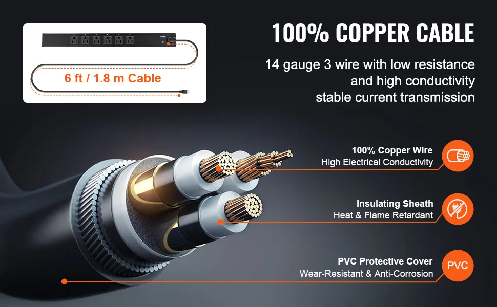 Material duradero: la carcasa de metal reforzado de la regleta es resistente y resistente al fuego, lo que ofrece una protección sólida. El cable de alimentación de 1,8 m (14/3 AWG) está diseñado para soportar tirones leves y brinda flexibilidad.