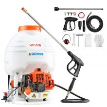 Pulverizador de mochila a gasolina VEVOR, motor de 26,5 cc y 0,9 HP, pulverizador de jardín con tanque de 19 litros, cobertura de áreas extensas, pulverizador de césped con varilla y boquillas de 61 cm para una jardinería y agricultura eficientes.