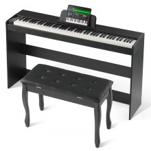 Piano digital contrapesado VEVOR, 88 teclas totalmente contrapesadas, teclado dual y altavoces, soporte de gabinete simple con banco doble, auriculares, 200 tonos y ritmos, compatible con Bluetooth/USB/MIDI, para lecciones de profesores.