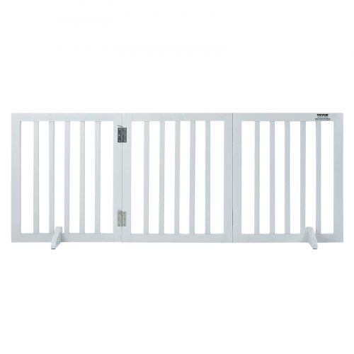 Puerta para perros VEVOR, 61 cm de alto x 152 cm de ancho, plegable, de 3 paneles, para pasillos anchos y estrechos, extensible con soporte silencioso para pies, para interiores, color blanco
