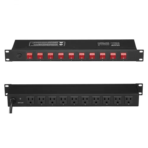 PDU VEVOR 1U, 10 tomas de corriente, regleta de enchufes para montaje en rack, compatible con racks de servidores estándar de 19", con interruptor independiente, protección contra sobretensiones y sobrecargas, 110-125 V/15 A, ideal para el hogar y la oficina.