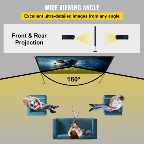 Pantalla de proyector VEVOR con soporte, pantalla de cine portátil de 150 pulgadas, 16:9, 4K HD, gran angular, soporte para pantalla de proyector para exteriores, fácil montaje con bolsa de almacenamiento para cine en casa, oficina, uso al aire libre.