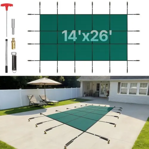 VEVOR Cubierta de seguridad para piscinas rectangulares de 12 x 22 pies, cubierta de seguridad para piscina con agujeros de drenaje, cubierta de piscina de PVC sólido para piscina, cubierta de segurid