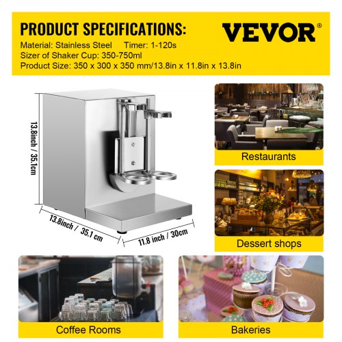 Máquina para hacer batidos VEVOR, batidora comercial de 120 W para té con leche, batidora de doble cabezal, batidora ajustable de 0 a 180 s, con vaso de acero inoxidable de 750 ml, para tiendas de té con leche.