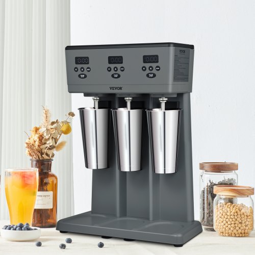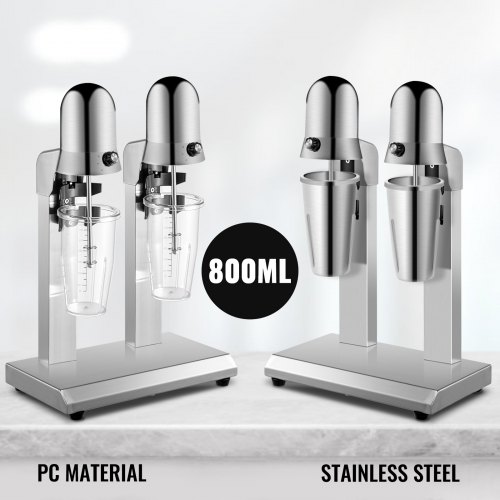 Mezclador eléctrico de té con leche VEVOR, máquina para mezclar té con leche de dos tazas, 400 rpm, acero inoxidable, dos tazas de 750 ml para té de burbujas y té boba.