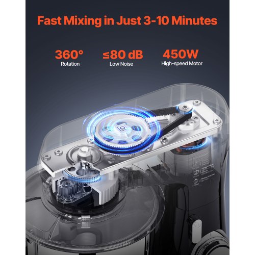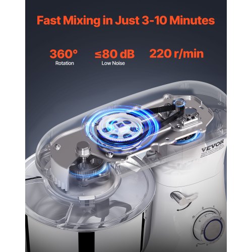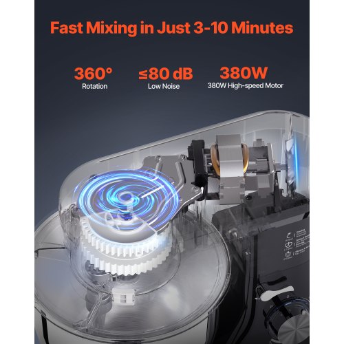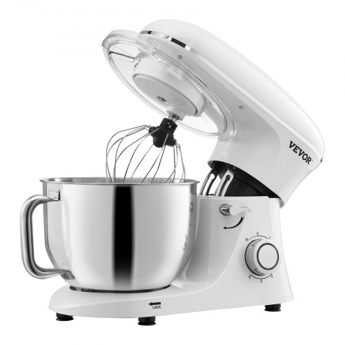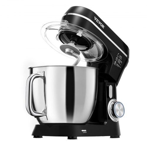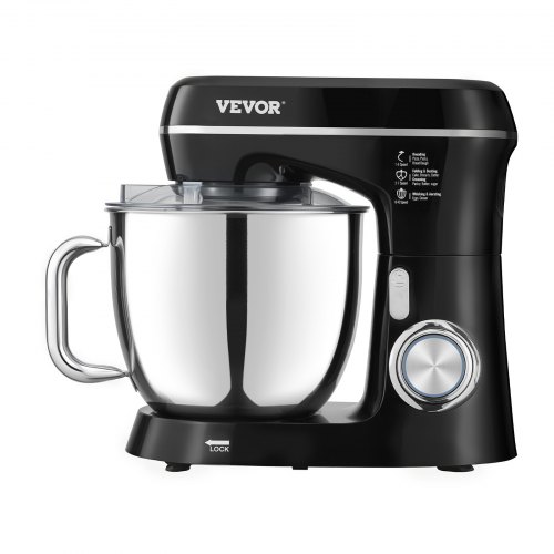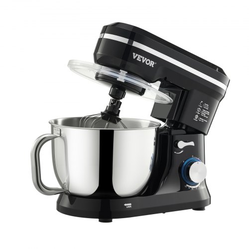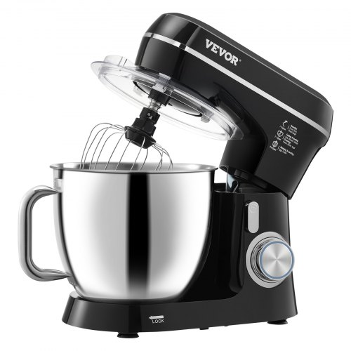 Batidora de pie VEVOR, 5 cuartos de galón, 10+ velocidades, cabezal inclinable, tazón de acero inoxidable, gancho para masa, batidor de alambre, batidor, raspador, batidora de pie doméstica para hornear, color negro