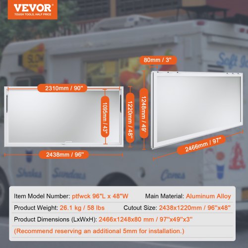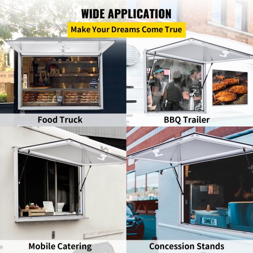 Ventana de concesión VEVOR de 244 x 122 cm, de aleación de aluminio, con toldo y gancho de arrastre, para servicio de food trucks y remolques de concesión, con ángulo de hasta 28 °C. Vidrio no incluido.