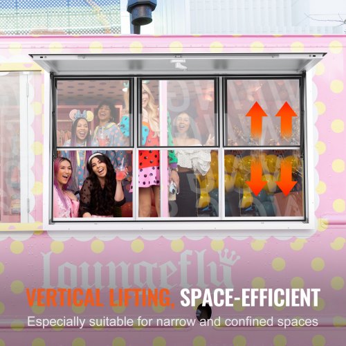Ventana de concesión VEVOR de 152 x 91 cm, de aleación de aluminio, para servicio de food trucks, con ventanas de elevación vertical, puerta abatible y gancho de arrastre, con una inclinación de hasta 28 °C para food trucks y remolques de concesión.