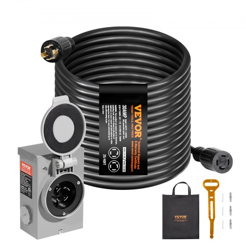 Kit de cable de alimentación y caja de entrada para generador VEVOR de 30 amperios, 40 pies, NEMA L14-30P/L14-30R STW, cable de extensión de alimentación para generador de 10 AWG con conector de bloqueo giratorio, caja de entrada preperforada para vehículos recreativos y exteriores, certificado ETL.