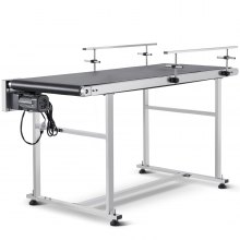 Transportador de banda VEVOR, mesa transportadora de 59 x 15,7 pulgadas, transportador de banda motorizado de acero inoxidable de alta resistencia para aplicaciones de codificación por inyección de tinta, banda de PVC motorizada, antiestática, velocidad ajustable (barandilla doble)