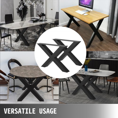 VEVOR - Juego de 2 patas de acero para mesa de comedor (71,1 cm de alto y 80,9 cm de ancho), resistentes, con sección cuadrada de 8,9 cm y marco en X, 71,1 cm x 80,9 cm x 8,9 cm, color negro, estilo industrial rústico.