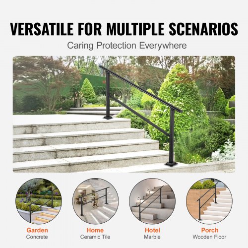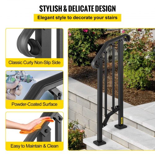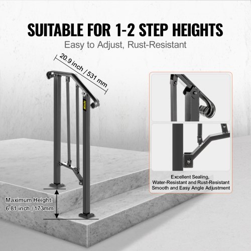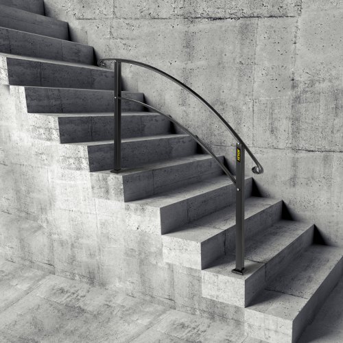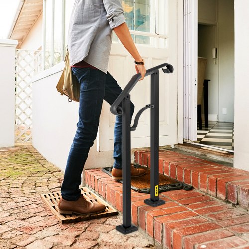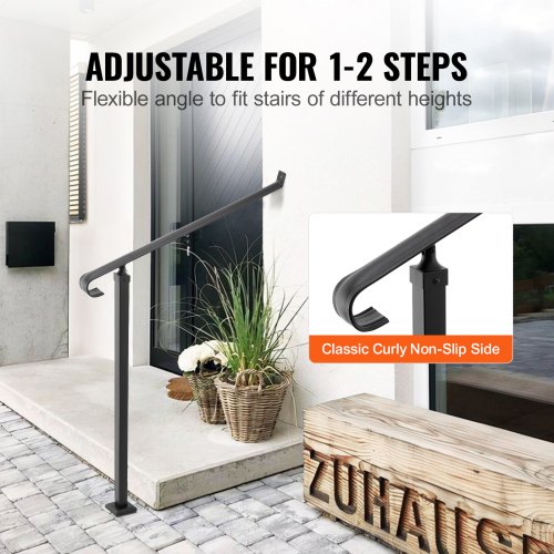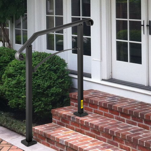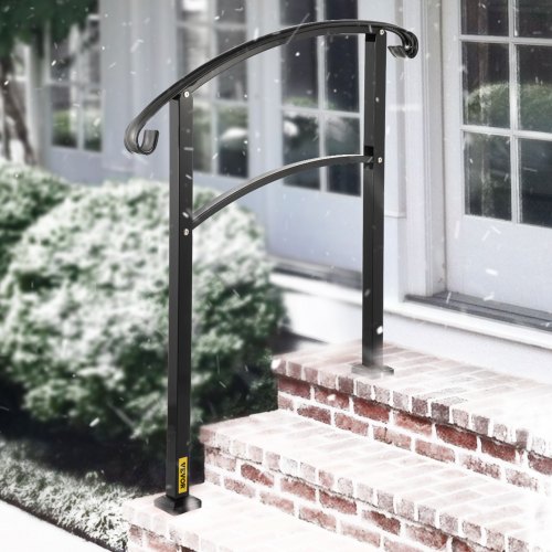 VEVOR - Barandilla de escalera para exterior, de hierro forjado, ajustable para 1 o 2 escalones, para porche delantero, color negro, ideal para escalones de hormigón o madera, con kit de instalación.