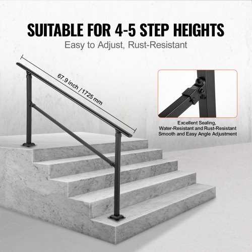 Kit de barandilla de escalera para exteriores VEVOR, pasamanos de 1,2 m para 1-4 escalones, pasamanos de aluminio negro con ángulo ajustable para personas mayores, pasamanos para escaleras exteriores