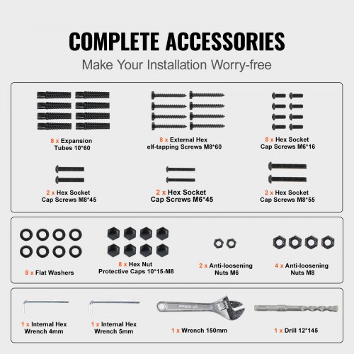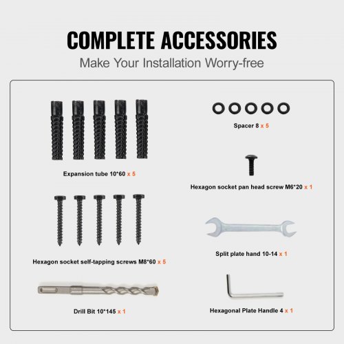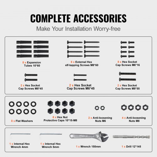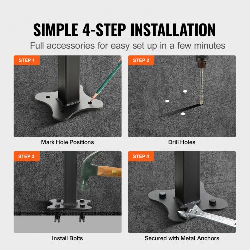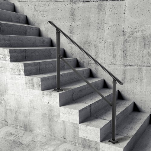 Barandilla de escalera exterior VEVOR, apta para escalones de 0 a 2, de hierro forjado, ajustable, para escalones de hormigón con kit de instalación, color negro mate.