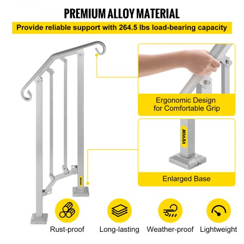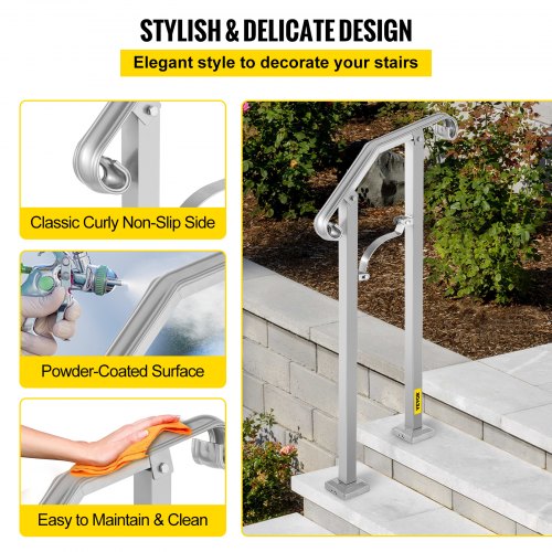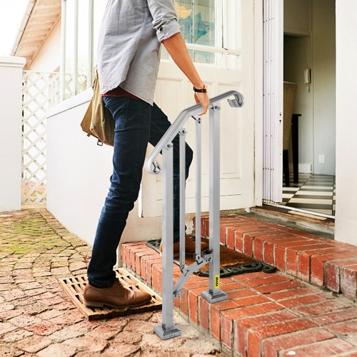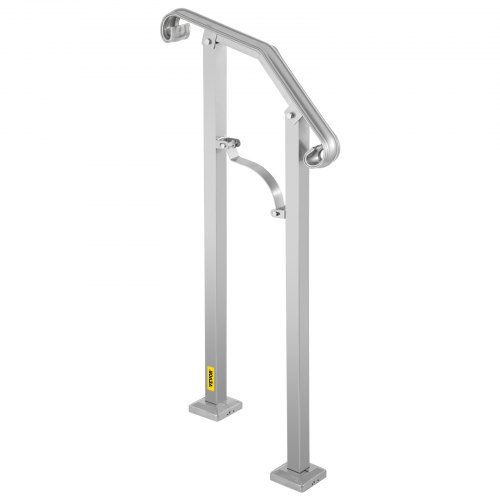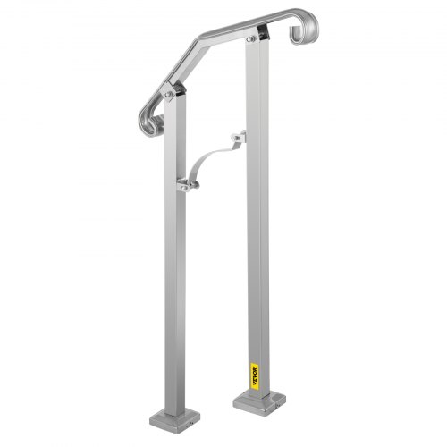 VEVOR - Barandilla de escalera para exterior, apta para 1 o 2 escalones, de aleación de metal, flexible, de transición, para porche, con kit de instalación, para escaleras de hormigón o madera, color plateado