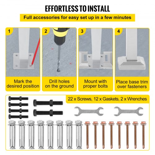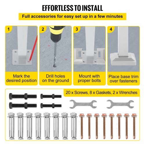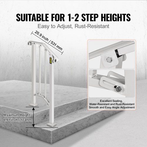 Kit de barandilla de escalera para exteriores VEVOR, pasamanos de 1,2 m para 1-4 escalones, pasamanos de aluminio blanco con ángulo ajustable para personas mayores, pasamanos para escaleras exteriores