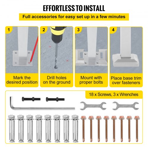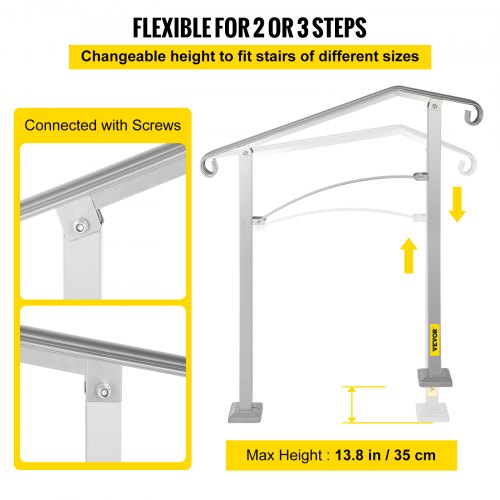 VEVOR - Barandilla de escalera para exterior, apta para 2 o 3 escalones, de aleación de metal, flexible, de transición, para porche, con kit de instalación, para escaleras de hormigón o madera, color plateado