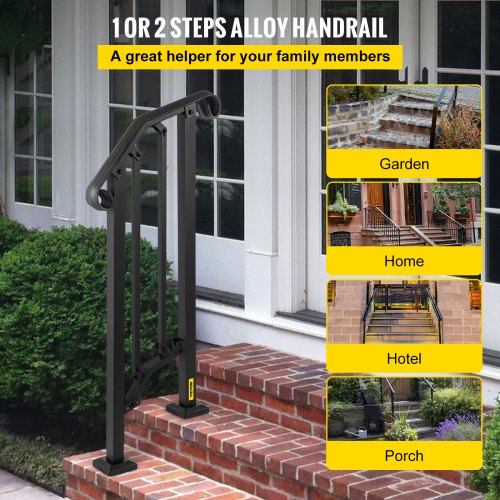 VEVOR - Barandilla de escalera para exterior, apta para 2 o 3 escalones, de aleación de metal, flexible, de transición, para porche, con kit de instalación, para escaleras de hormigón o madera, color negro