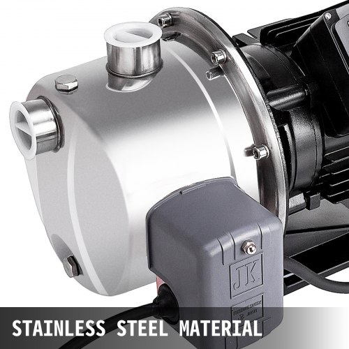 VEVOR Bomba de Chorro para Pozo Poco Profundo con Interruptor de Presión Bomba de Agua a Chorro de 1 HP Bomba de Chorro de Acero Inoxidable de 147,6 Pies para Suministrar Agua Dulce de Pozo, Negro