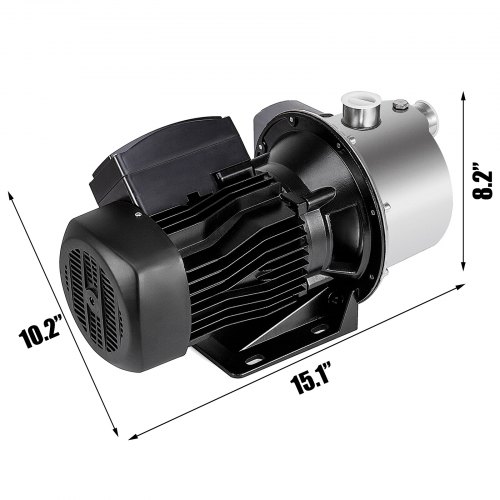 Bomba para pozos poco profundos VEVOR, 1.5 HP, 115 V, 1200 GPH, 164 pies de altura, 87 psi de presión máxima, bombas de chorro de refuerzo de aspersor portátiles de acero inoxidable para sistemas de riego de césped de jardín, fuente de lago y transferencia de agua.