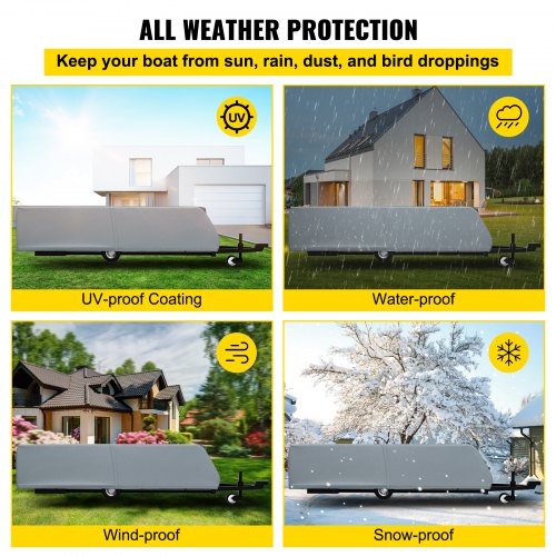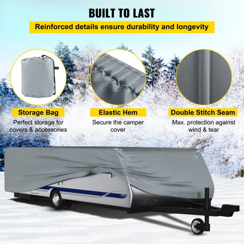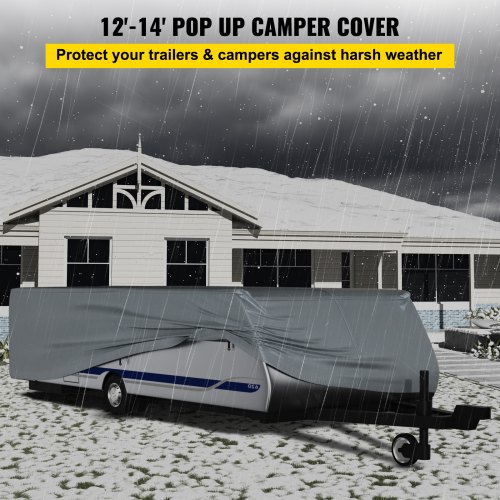 VEVOR - Funda plegable para caravana de 12 a 14 pies, tela no tejida antidesgarro de 4 capas, resistente a los rayos UV, impermeable, con 3 cuerdas a prueba de viento y 1 bolsa de almacenamiento, color gris