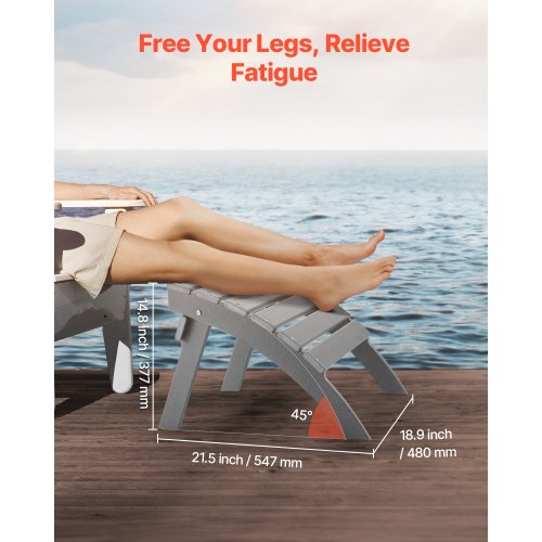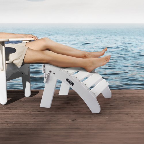 Otomana Adirondack VEVOR, 45 cm (largo) x 50 cm (ancho) x 35 cm (alto), plegable, de plástico HDPE, con reposapiés resistente a la intemperie para silla Adirondack, ideal para porches, piscinas, jardines, color blanco.