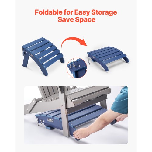 VEVOR - Juego de 2 otomanas Adirondack (47,2 cm de largo x 47,2 cm de ancho x 35,5 cm de alto), plegables, de plástico HDPE, con reposapiés resistente a la intemperie para sillas Adirondack, ideales para porches, piscinas, jardines, etc., color azul.