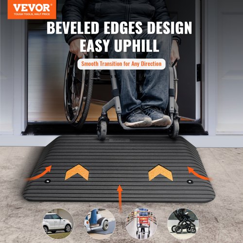 Rampa de umbral de goma mejorada VEVOR, rampa de puerta de 7,6 cm con 1 canal, rampa de caucho natural para coche con superficie texturizada antideslizante, capacidad de carga de 15000 kg, rampa de acera para silla de ruedas y scooter